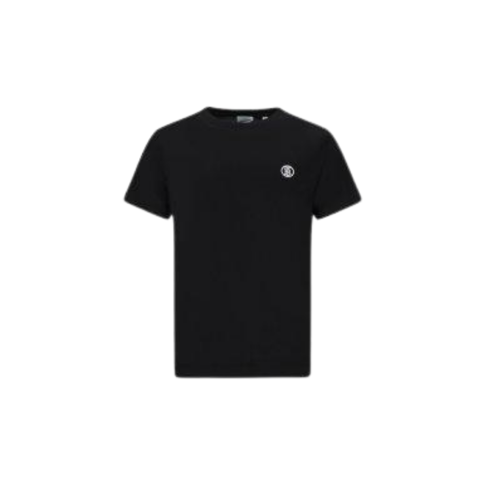 T-shirt noir à col ras du cou et manches courtes. Un petit logo blanc et circulaire est brodé sur la poitrine. Le t-shirt est confectionné dans un tissu uni.
